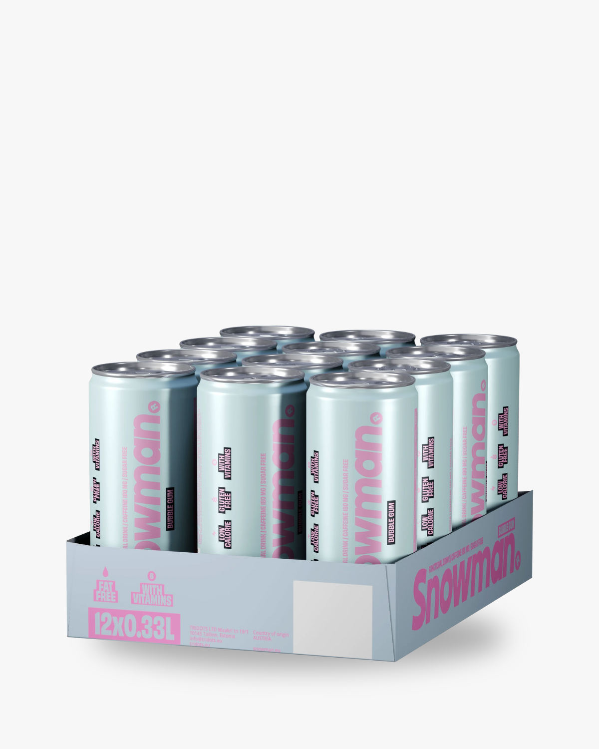 - Unleash your focus with Snowman Bubble Gum, a functional drink that mixes nostalgia with next-level energy. Each 330ml can contains 180mg of natural caffeine and a clean blend that’s zero sugar, low calorie, and fat-free, enriched with collagen and vitamins to keep you feeling your best.